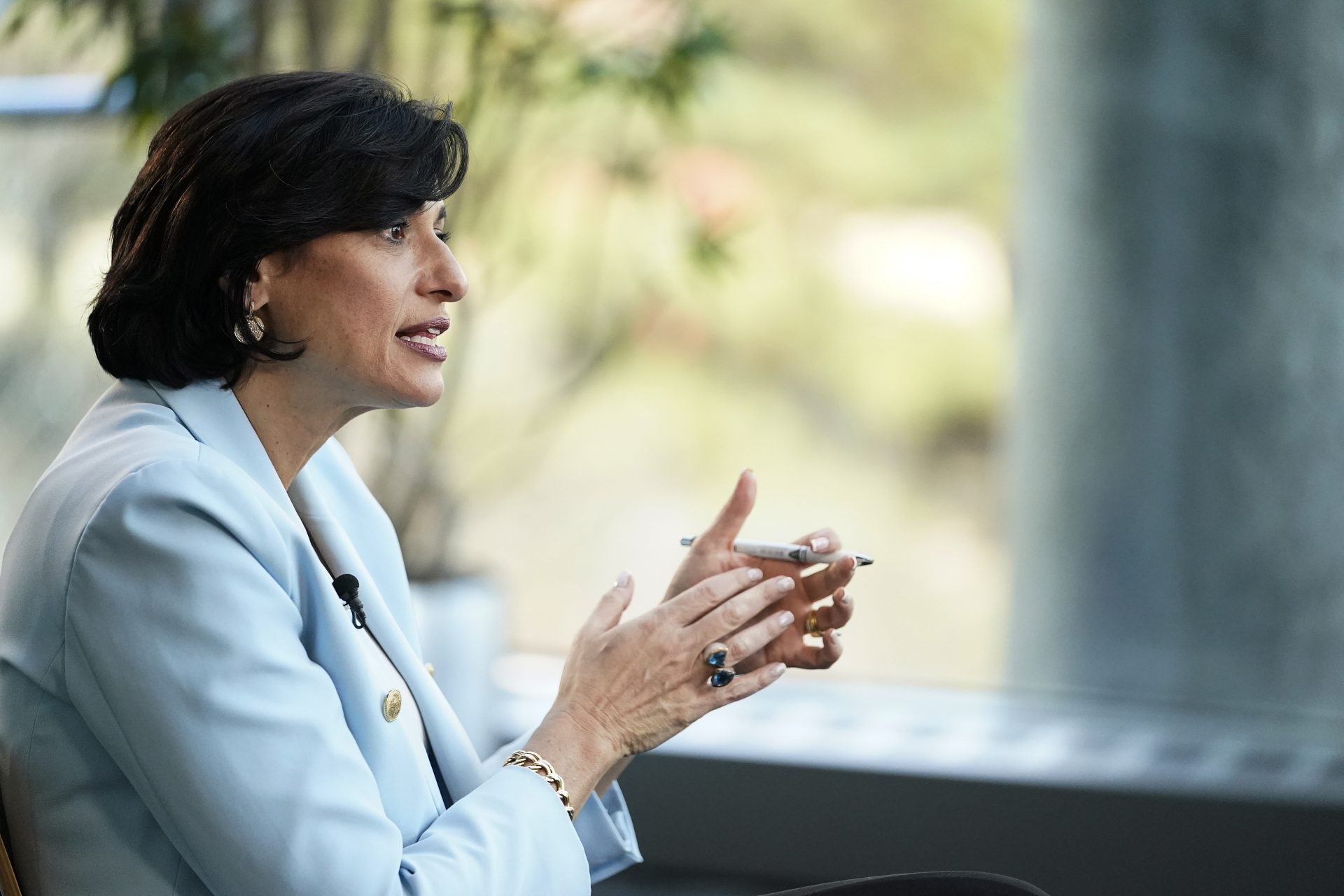 FILE – Dr. Rochelle Walensky, Director of the Centers for Disease Control and Prevention (CDC) speaks during an interview with The Associated Press on Dec. 8, 2021, in Atlanta. One year into Walensky’s tenure as director, her bid to make the CDC more agile is being challenged by political pressures, vocal scientists and the changing virus itself. (AP Photo/Brynn Anderson, File)