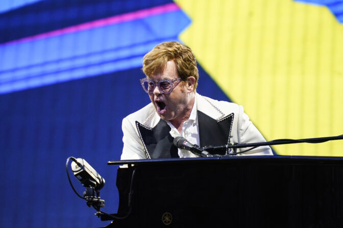 Elton John performs during his “Farewell Yellow Brick Road,” tour, Friday, July 15, 2022, at Citizens Bank Park in Philadelphia. (AP Photo/Matt Rourke)