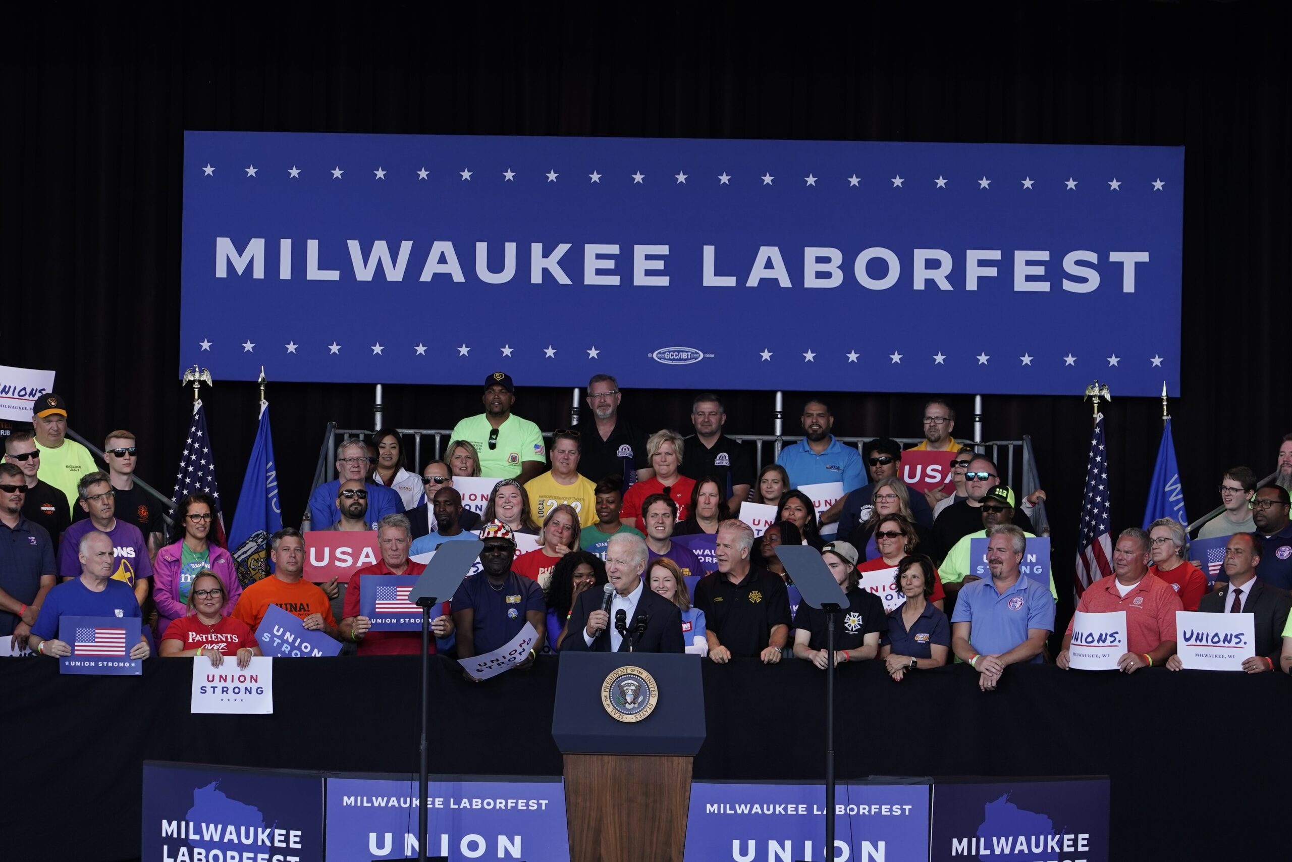 “The middle class built America,” Biden told a workers’ gathering at park grounds in Milwaukee. “Everybody knows that. But unions built the middle class.”