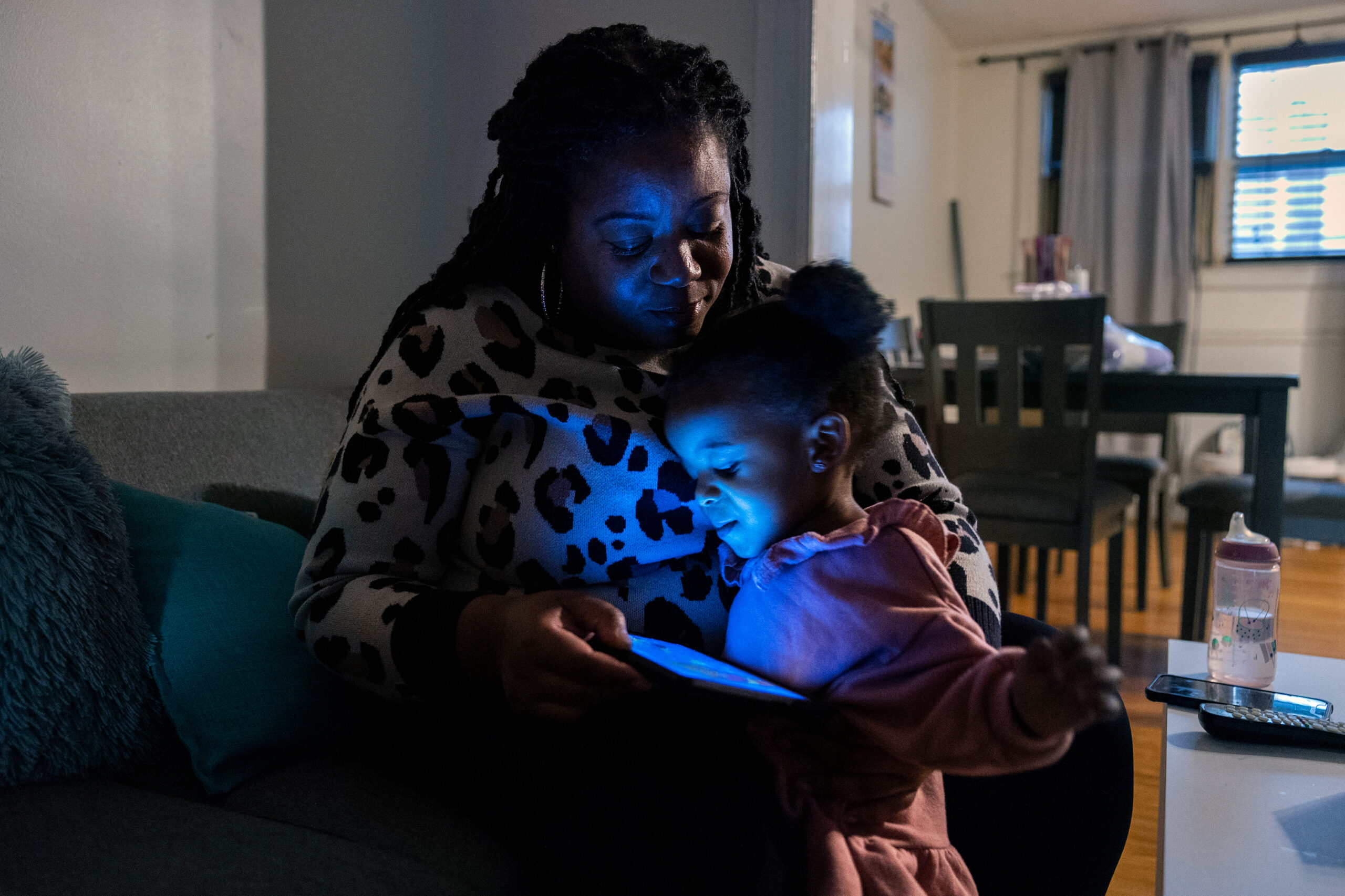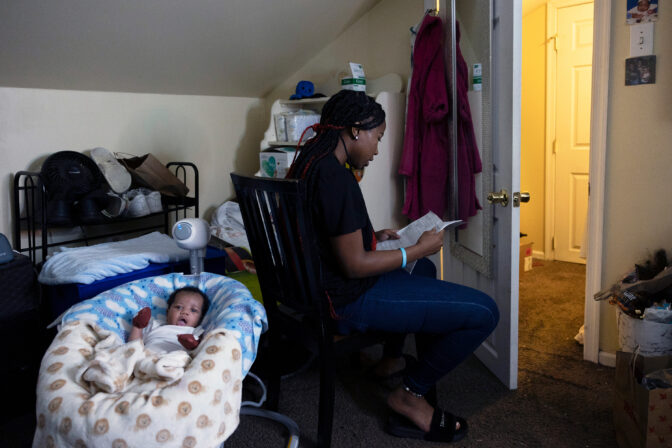 -Ja’Mil’Lion DeLorenzo reads literature she’s received from the Nurse-Family Partnership in her bedroom at her grandmother’s home in Glenholden, Pa.
